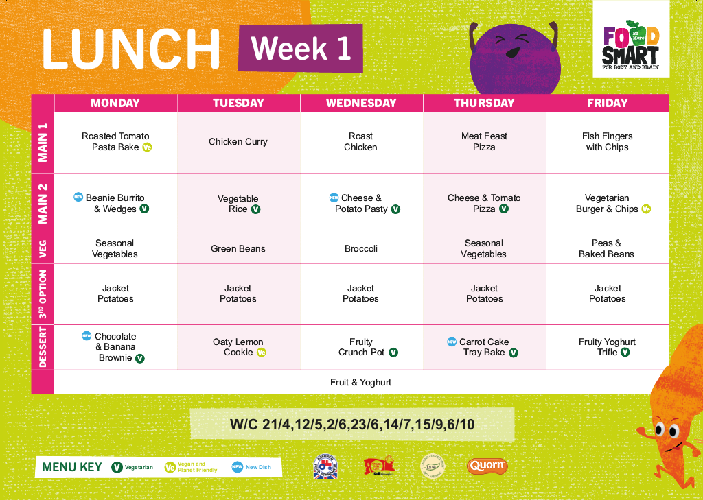 We provide the option of hot dinners as well as packed lunches. They are provided by Alliance in Partnership. Lunches are free for all children in YR, Y1 and Y2. Paid lunches are £2.65 per day.