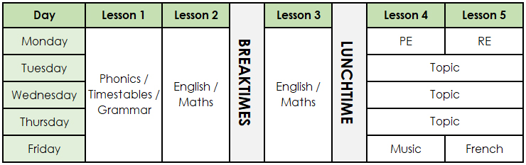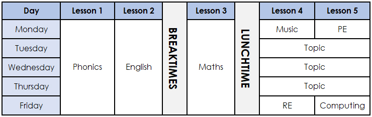 9.00am: Lessons start - prior to this children complete morning tasks based upon learning from the previous day.