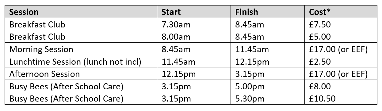 Little Hedgehogs Nursery runs for children age 3 upwards, term time only. Please refer to the school calendar for term dates. (NB On occasion there are inset days when the school and nursery are closed. Also, on the last day of every full term, ie Christmas, Easter and Summer, there is an early finish at 2pm.)